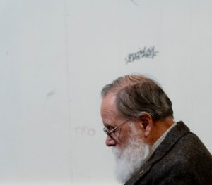 Harold Berman, a fraternity advisor at the University of Minnesota, sits in a graffitied basement for a portrait, Sunday, Feb. 19, 2024. Just shy of 80 years old, Berman has been a involved in the community since he attended the Univesrity of Minnesota in the late 1960s. He says fraternity life has definitely changed, but the goal of brotherhood remains the same.