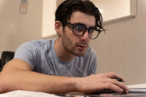 Jacob Kappenman poses for a portrait in a photojournalism class at the University of Minnesota, Thursday, Jan. 25, 2024. (Ethan Fine)